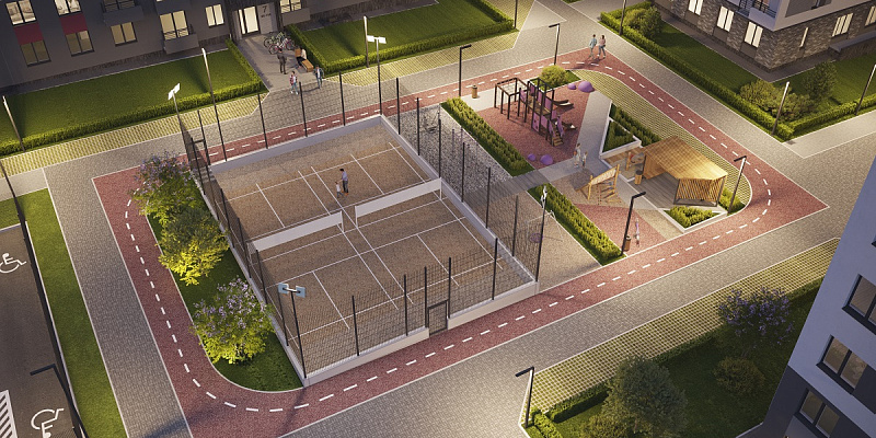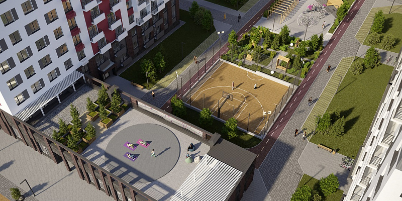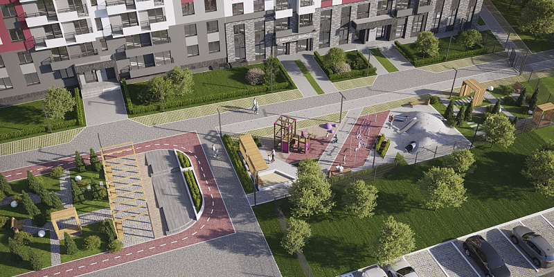 Дворы жилого комплекса созданы для людей, поэтому парковки для транспорта расположены за его пределами.