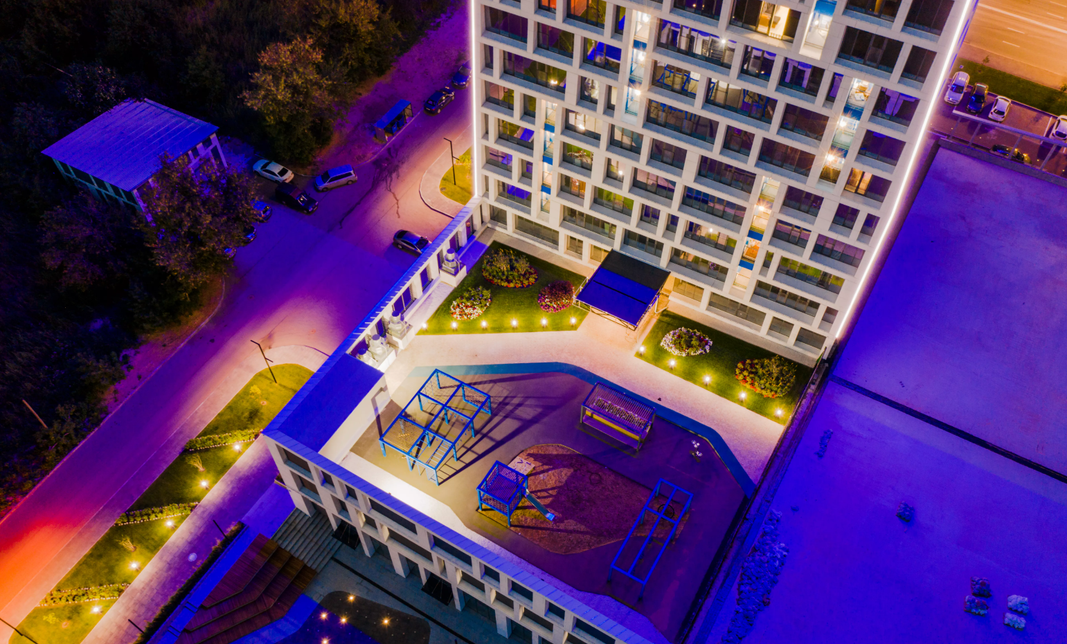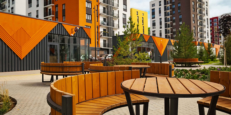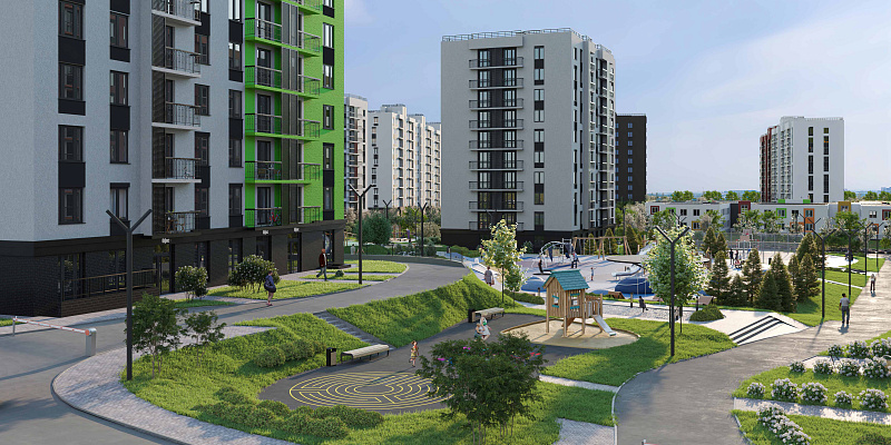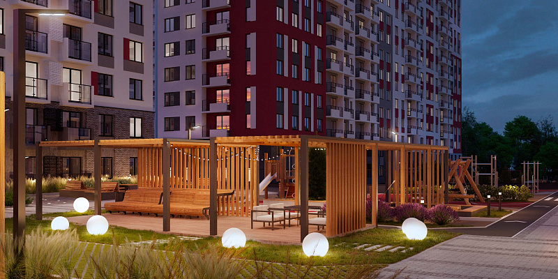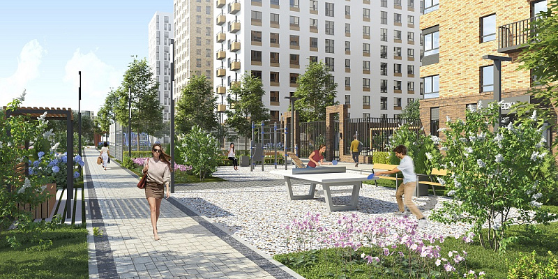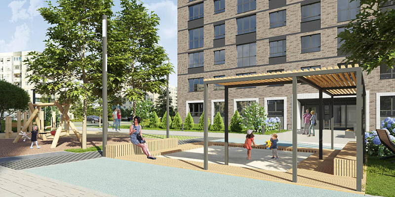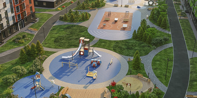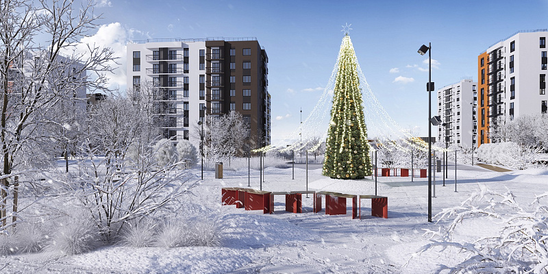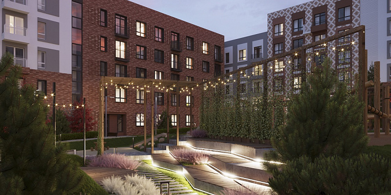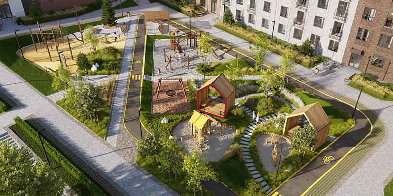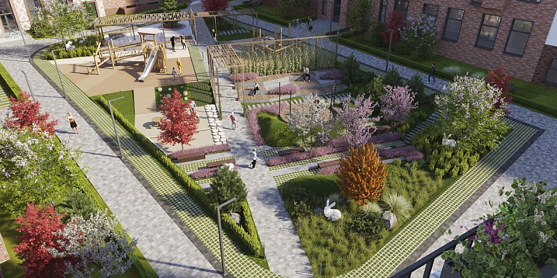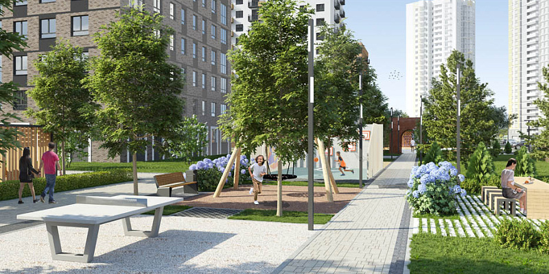 Мы сознательно увеличили уровень озеленения, чтобы вы жили в окружении природы и каждый день наслаждались лиственными и хвойными деревьями, кустарниками, цветами и зелёным газоном.