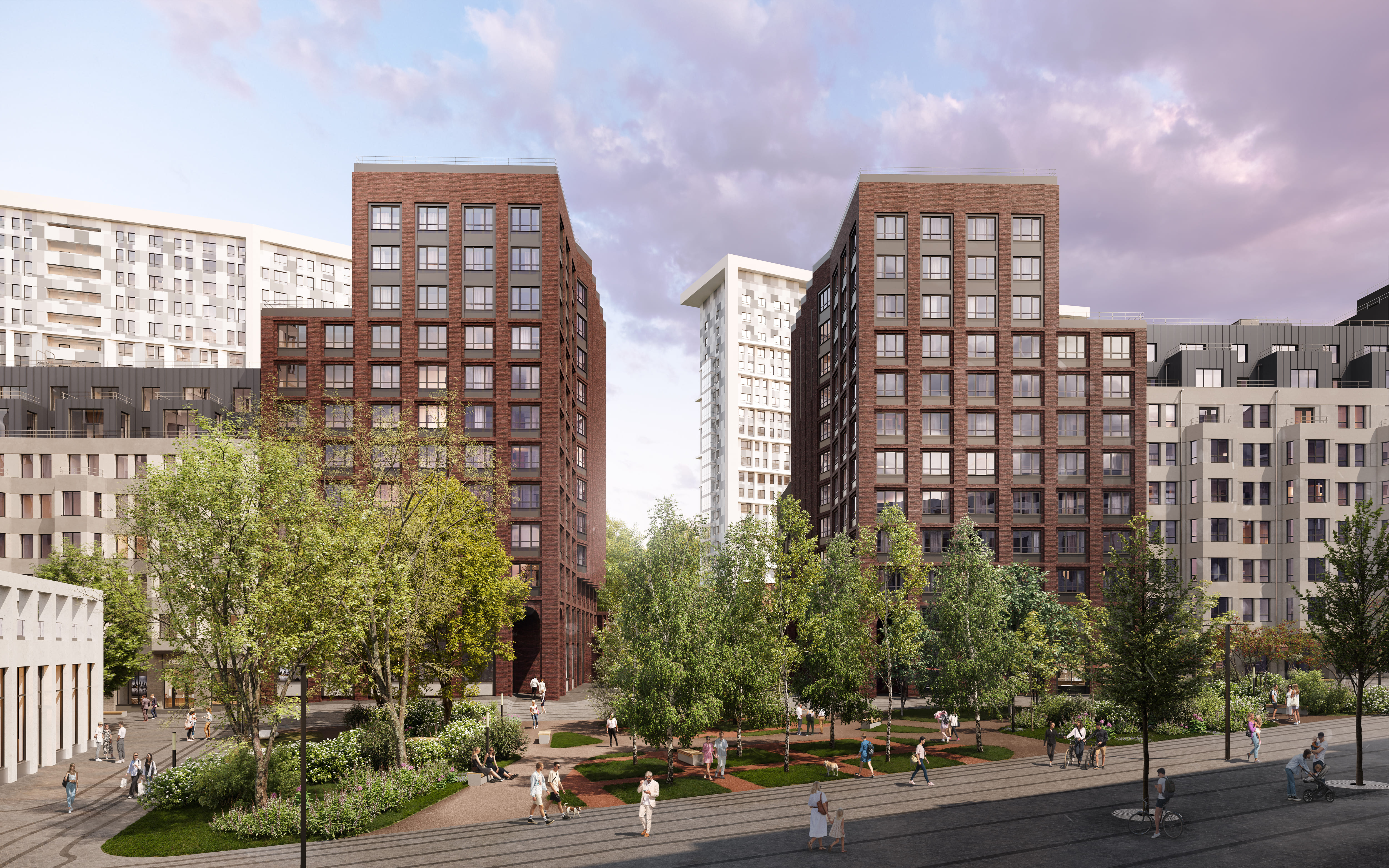 Если вы хотите жить в невысотном доме в спокойной обстановке, то в "Пяти континентах" вам подойдут уютные дома с эркерами и лоджиями высотой всего 7-9 этажей. А если нравятся высотные дома, то в "Пяти континентах" вы увидите и высотные секции внутри квартала высотой 12 и 17 этажей.