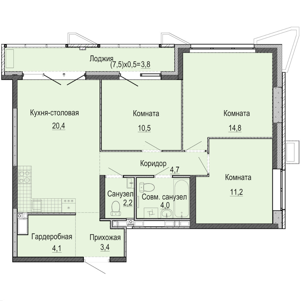 Продаётся 3-комнатная квартира в ЖК "А14 Умные кварталы", дом №5, на ул. Камбарской!