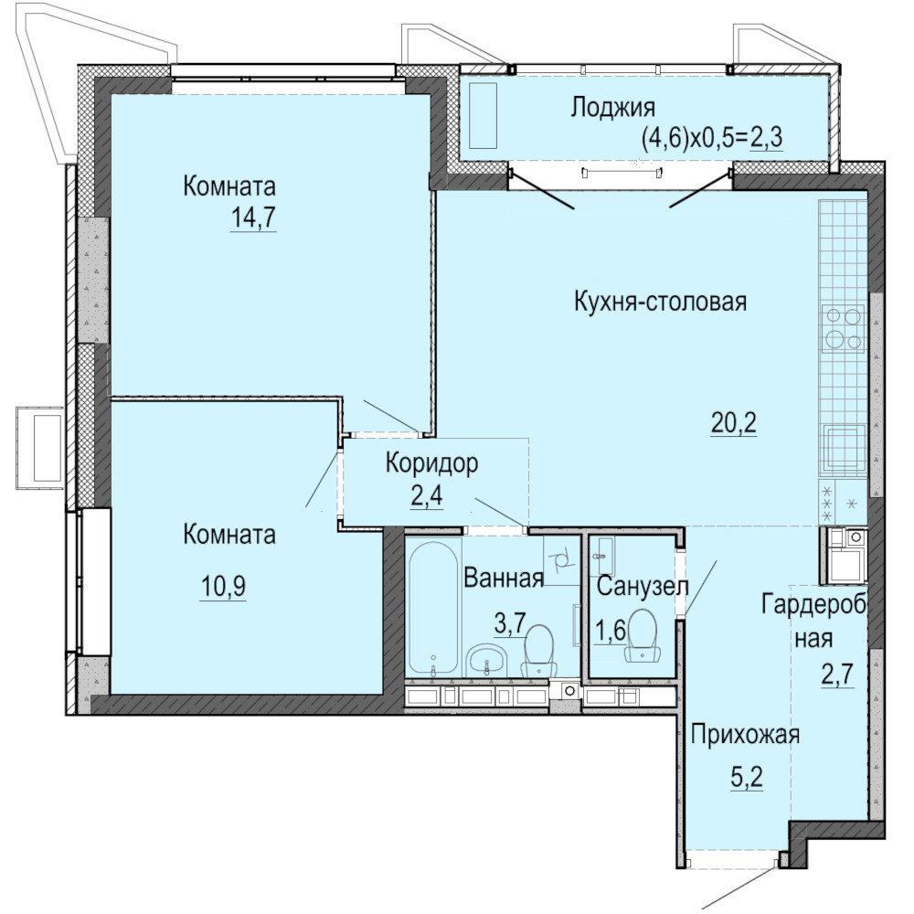 • До передачи квартиры собственнику в ней выполняются все капитальные и грязные работы. Стены подготавливаются под оклейку обоями. На полу выполняется полусухая стяжка со звукоизолирующим слоем. Водопровод и канализация заводятся в помещение с установкой заглушек, подводка до сантехнического оборудования не выполняется, устанавливаются счётчики воды.