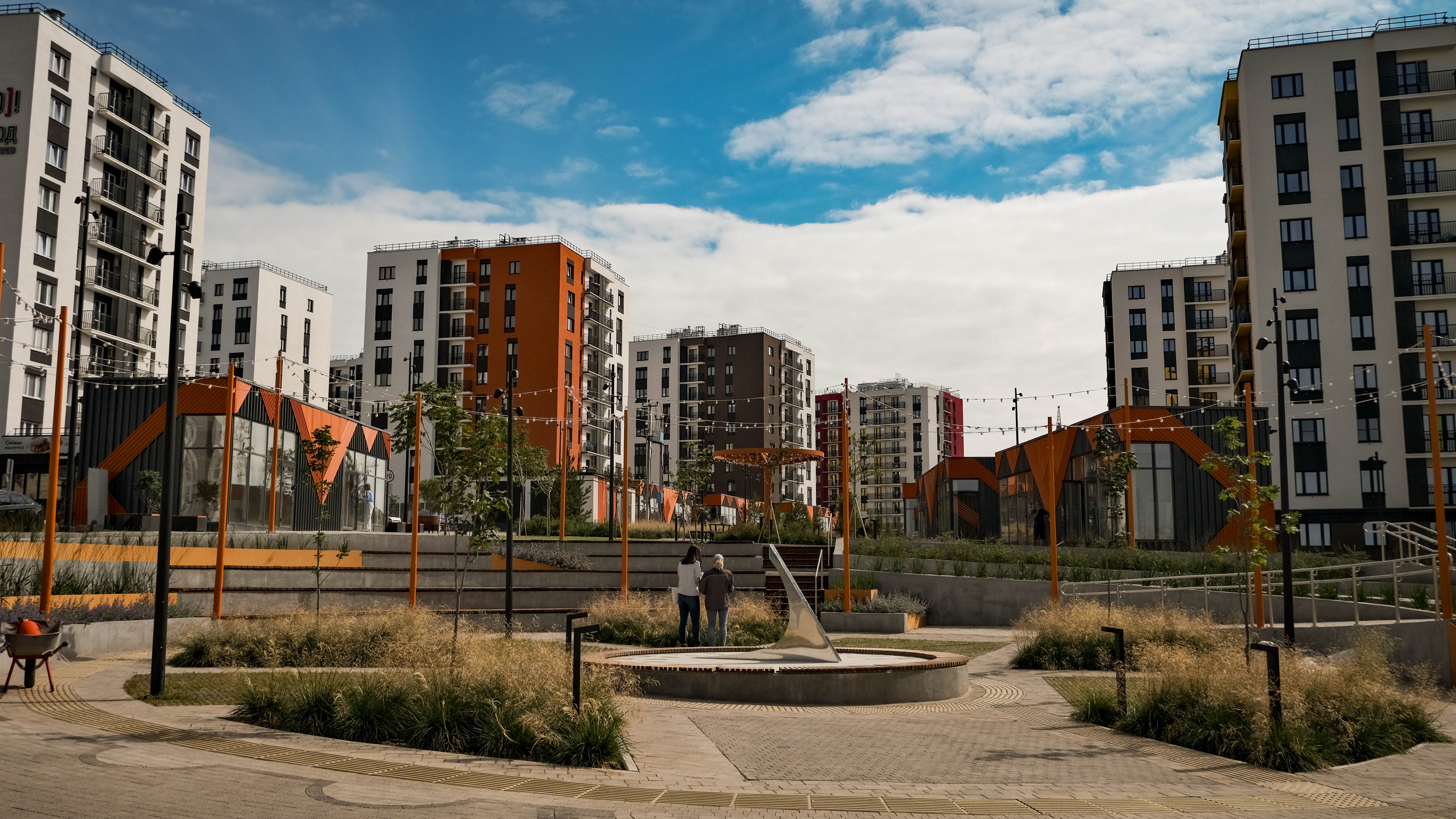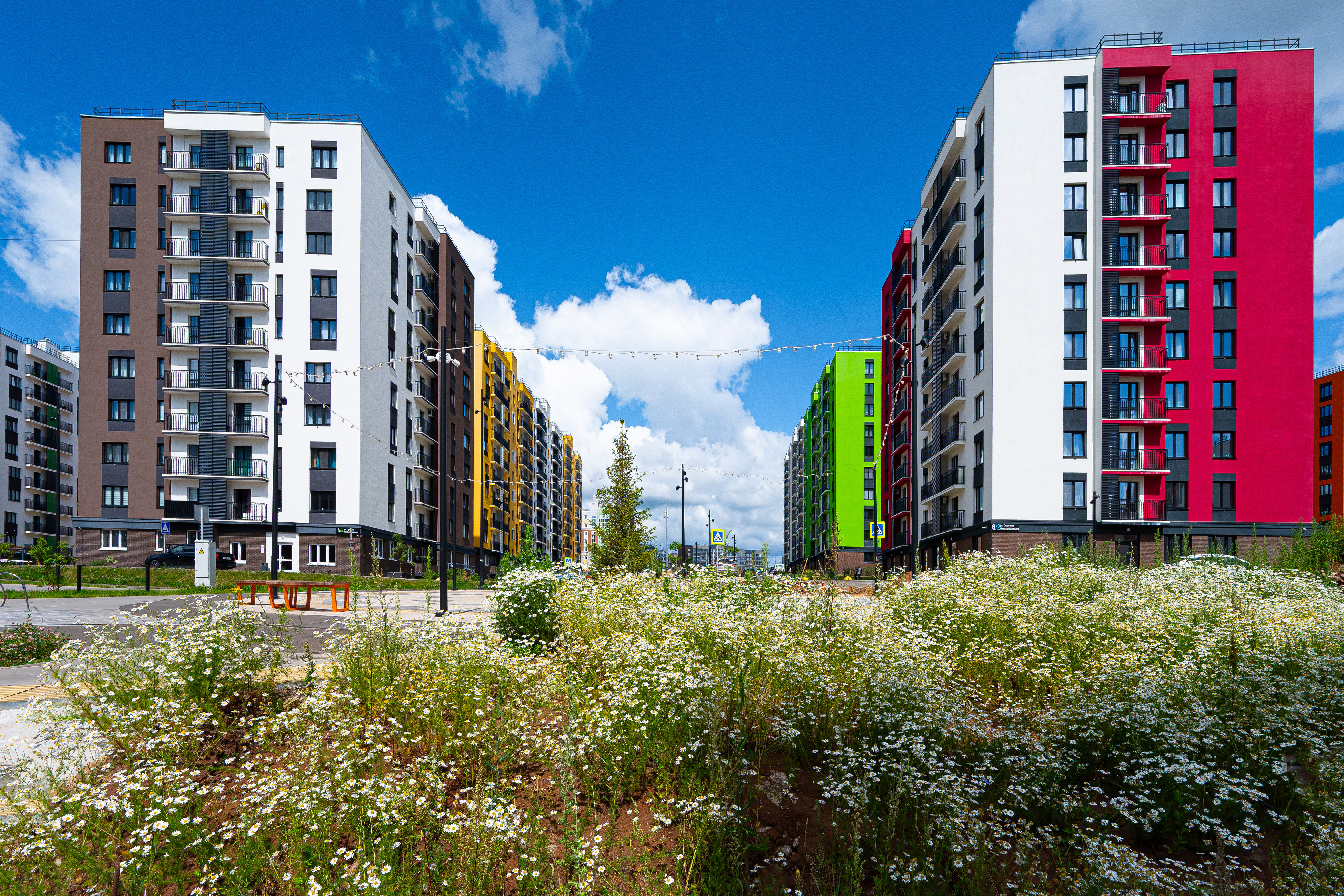 Двор Умных кварталов выполняется по принципу «двор без машин». Въезд во двор предусмотрен только для спецтехники по пешеходным тротуарам усиленной конструкции. Пешеходные тротуары отделены от проездов бордюрами и участками озеленения. Ландшафтный дизайн яркий и необычный. Во дворах будет чем заняться жителям всех возрастов!