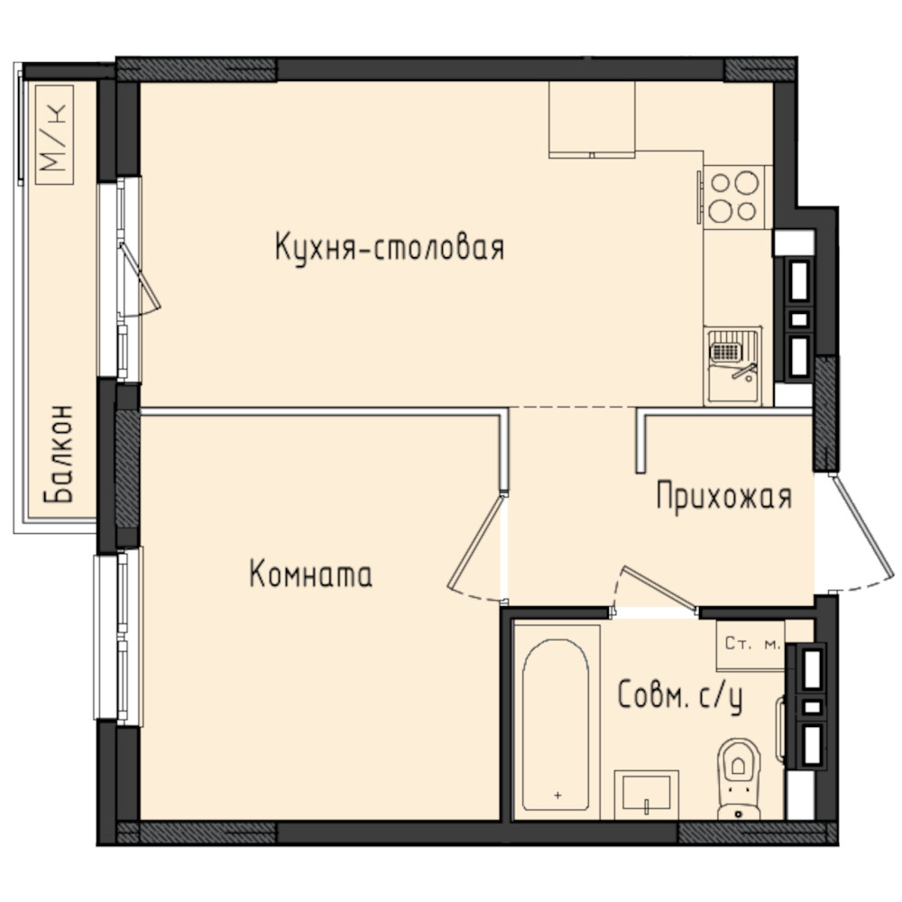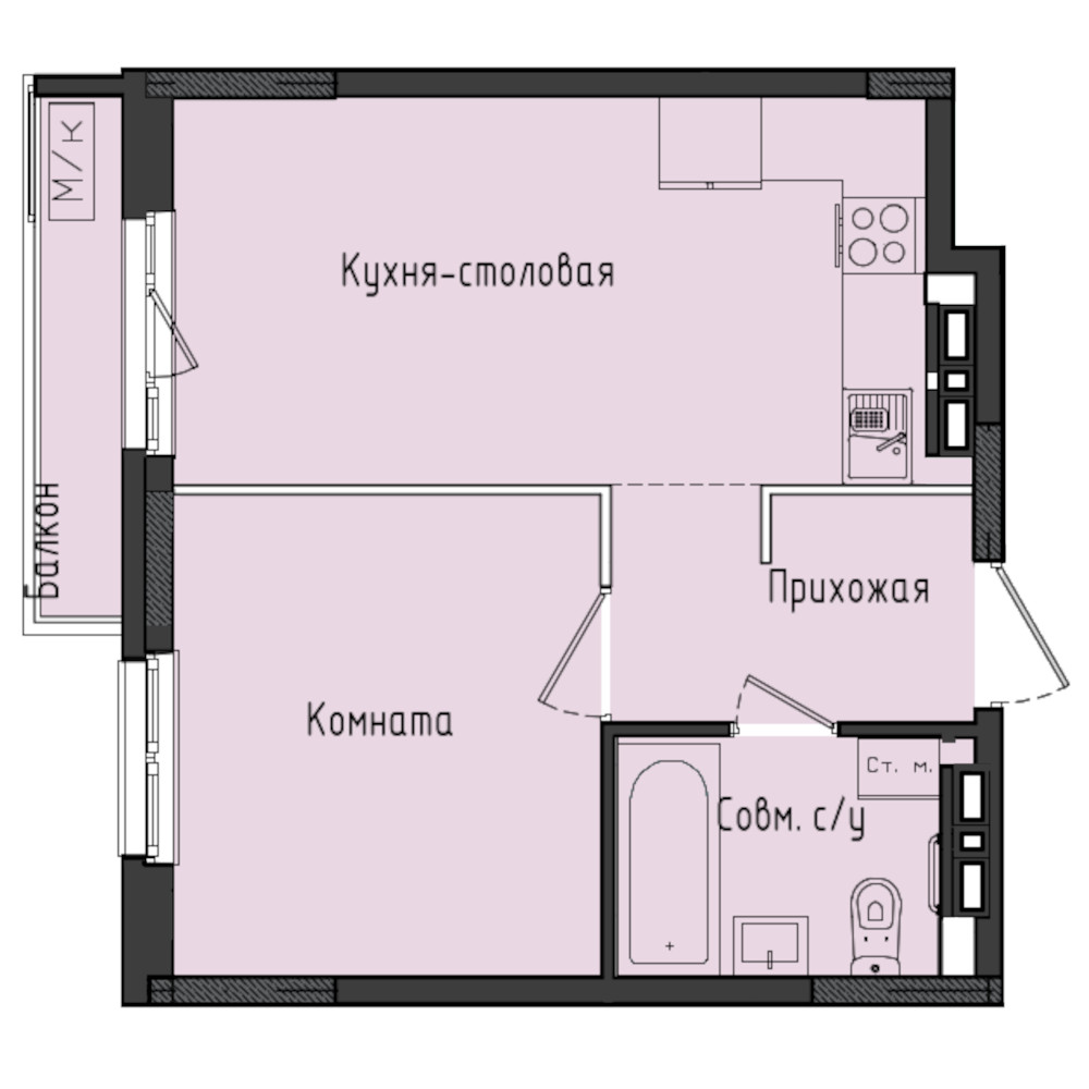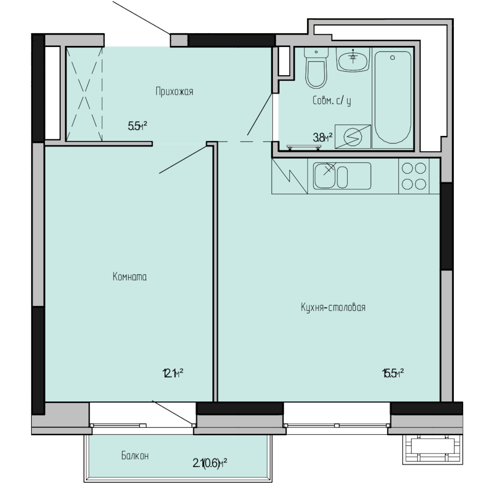 Купить 1к квартиру 38 м²