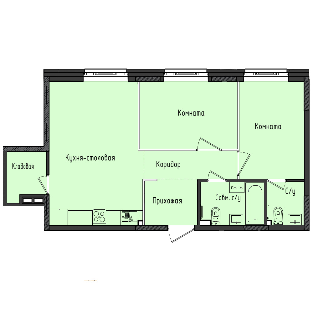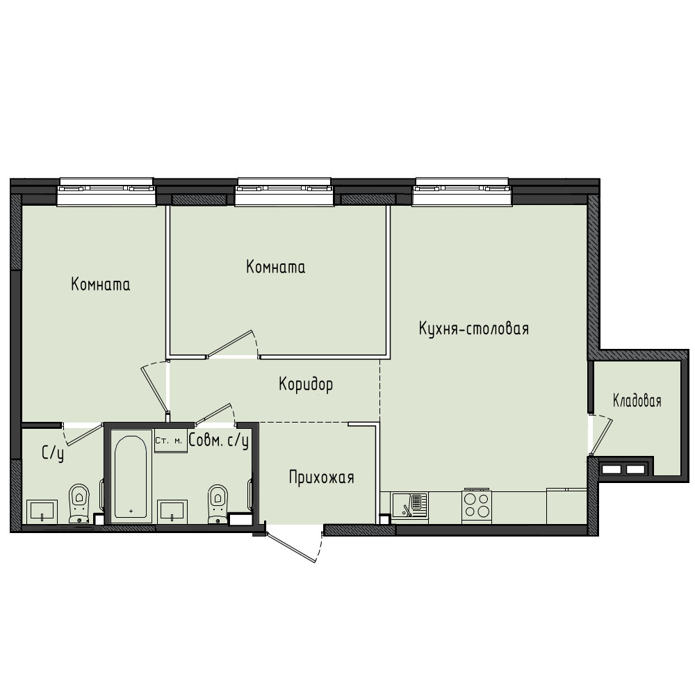 • До передачи квартиры собственнику в ней выполняются все капитальные и грязные работы. Стены подготавливаются под оклейку обоями. На полу выполняется полусухая стяжка со звукоизолирующим слоем. Водопровод и канализация заводятся в помещение с установкой заглушек, подводка до сантехнического оборудования не выполняется, устанавливаются счётчики воды.