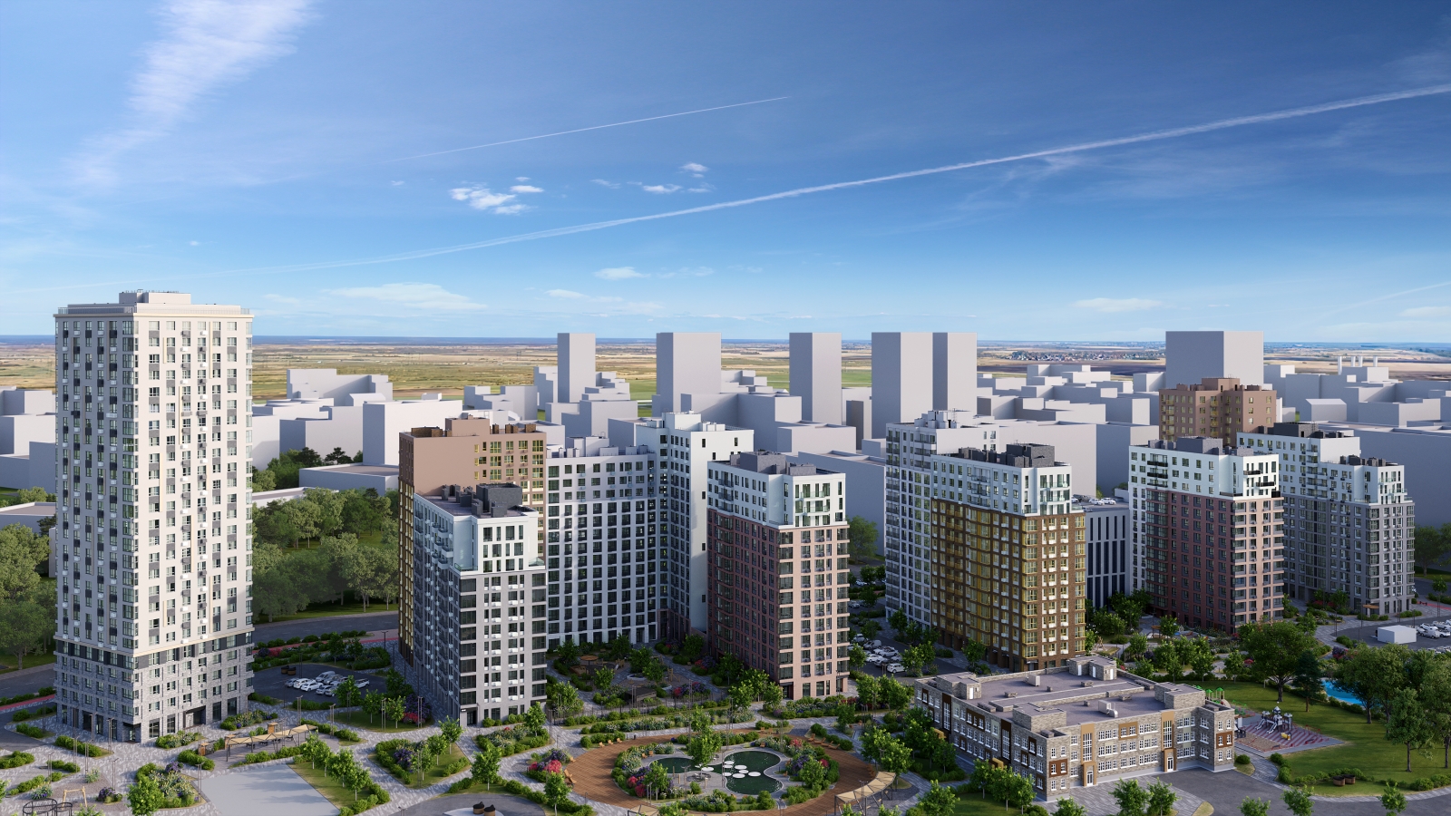 • Предусмотрен расширенный пакет системы Умный Дом: бесключевой доступ в подъезд, видеодомофон с функцией Face ID, видеонаблюдение, автоматизированный сбор и передача показаний счётчиков.
