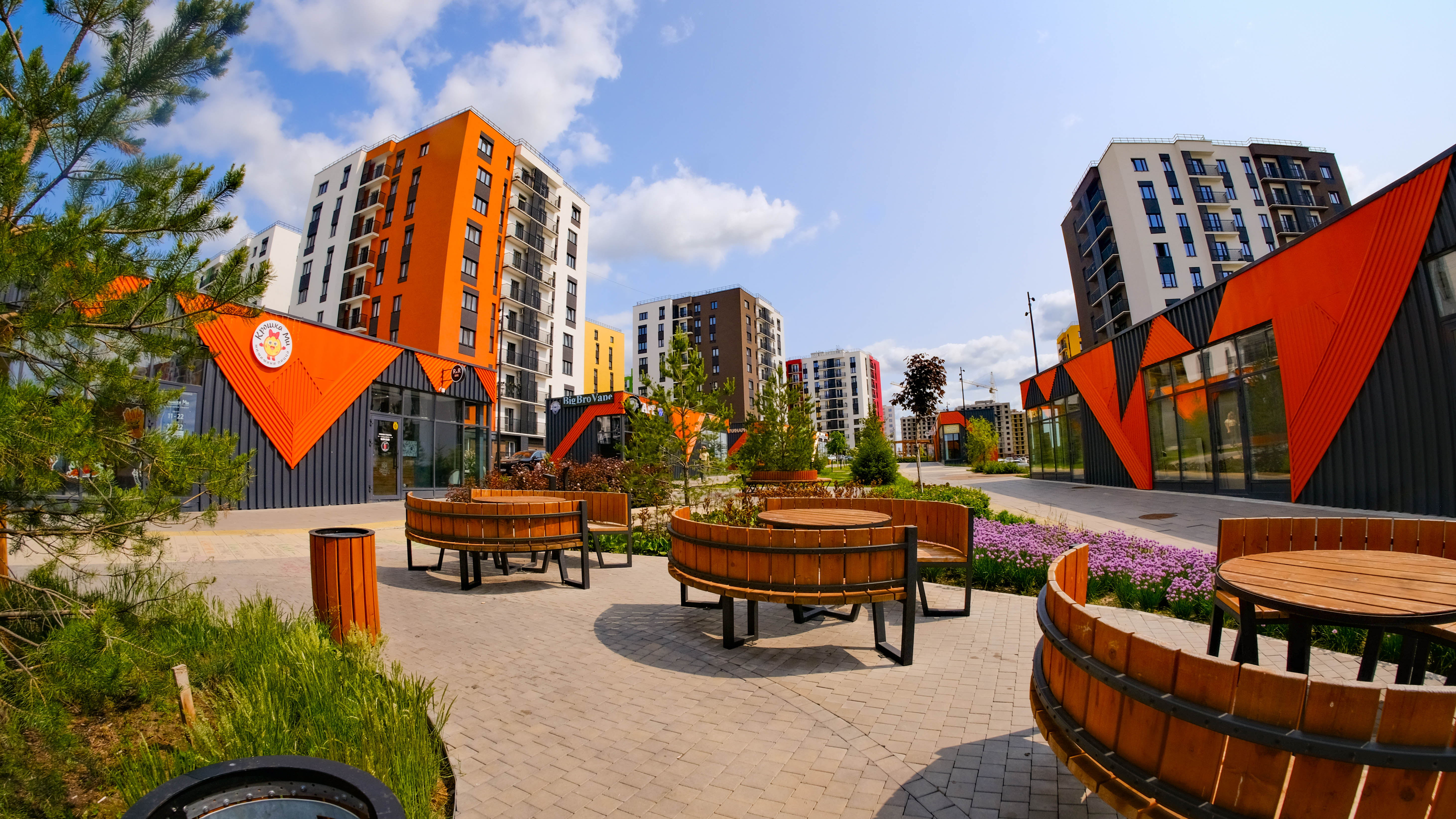 • Проектом строительства предусмотрен интересный и безопасный двор без машин наполненный зеленью и современным игровым оборудованием;