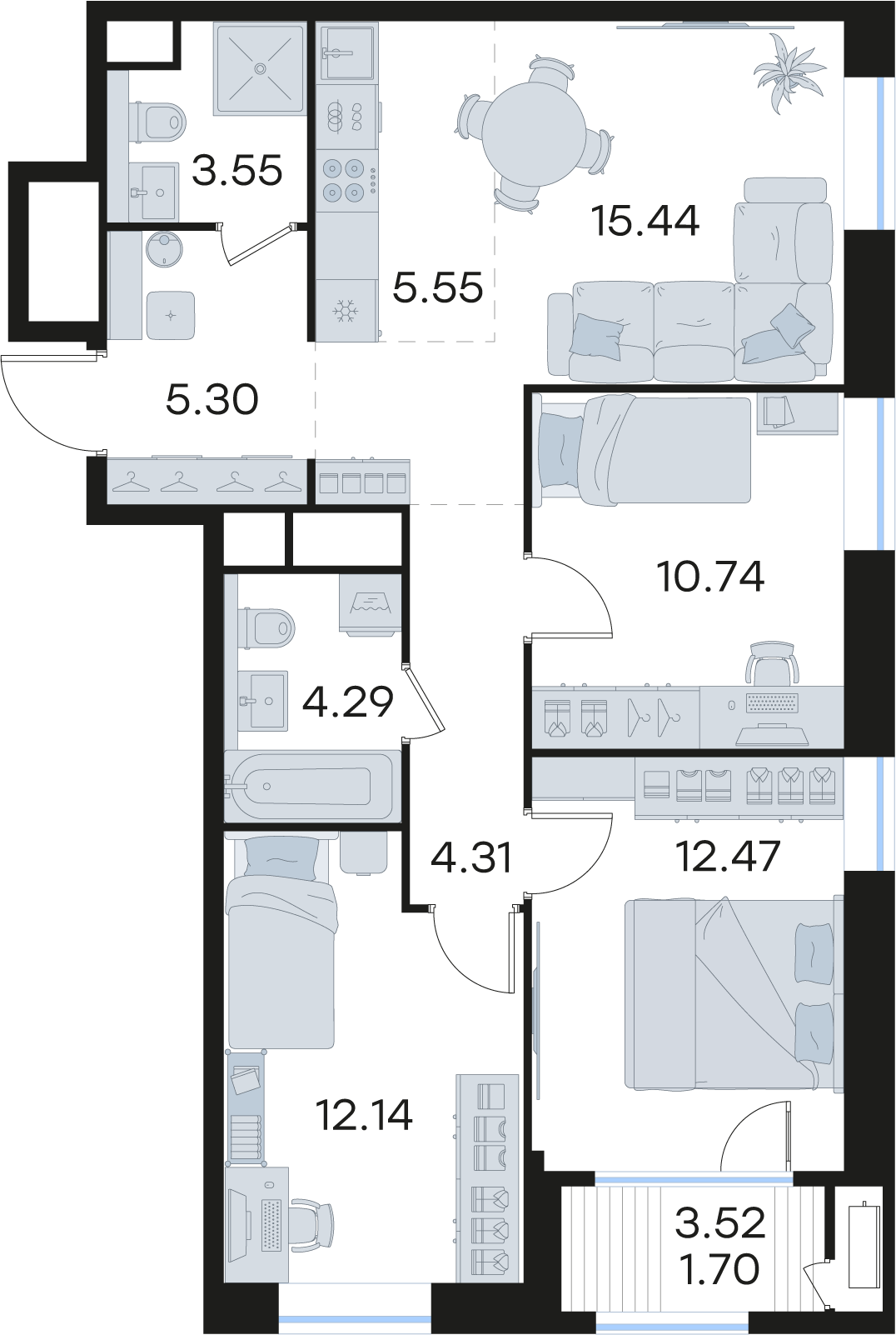 Купить 3к квартиру 62 м² в ЖК OCEAN city